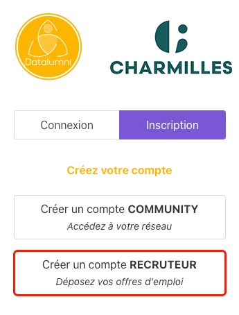 Créez votre compte Recruteur sur Datalumni, la plateforme qui regroupe les anciens étudiants des Charmilles.