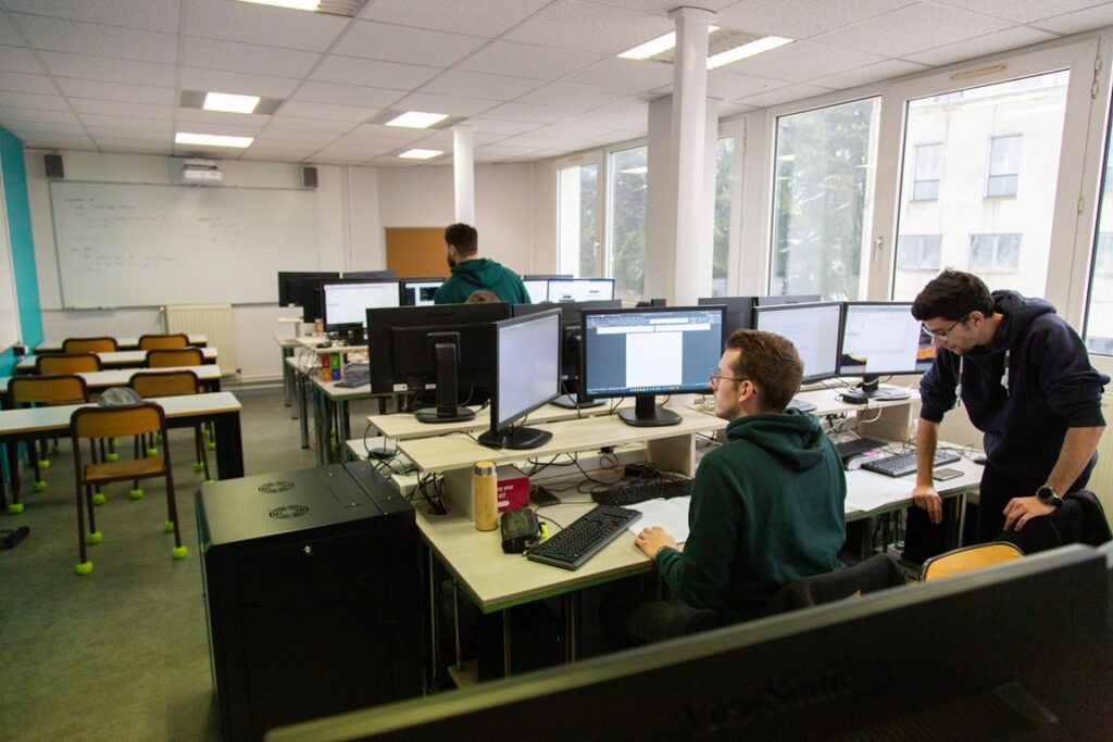 Une salle informatique dédiée avec un réseau fibre optique indépendante du reste de l’établissement pour pouvoir créer, manipuler et sécuriser des réseaux dédiés aux TP.