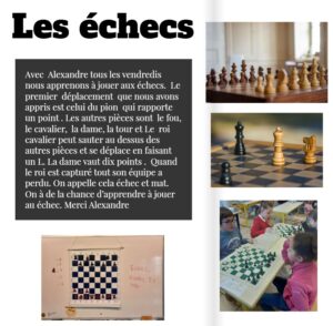 Le journal est créé par les enfants, pour les parents, il récapitule les actions, les rencontres, les sorties scolaires du trimestre en utilisant le texte, l’image, le son : c’est un journal complet qui montre bien l’engagement des équipes en classe.