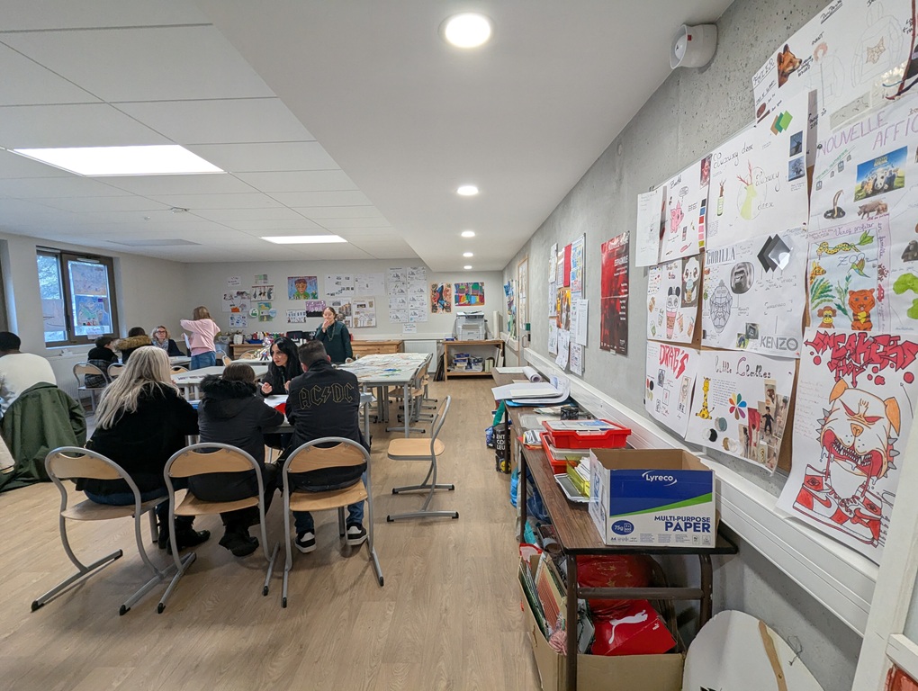 Le nouveau gymnase, le nouvel atelier Webradio, l’atelier flambant neuf du CAP IMTB, le BET (salle de travail de la filière Modélisation Numérique du Bâtiment) et le Corner (magasin pédagogique pour les filières Commerce) font leur effet, tout autant que la décoration colorée et chargée d’œuvres d’art des petits de l’école Sainte Marie, ou des témoignages des anciens de la SEGPA du Collège diffusés en continu.